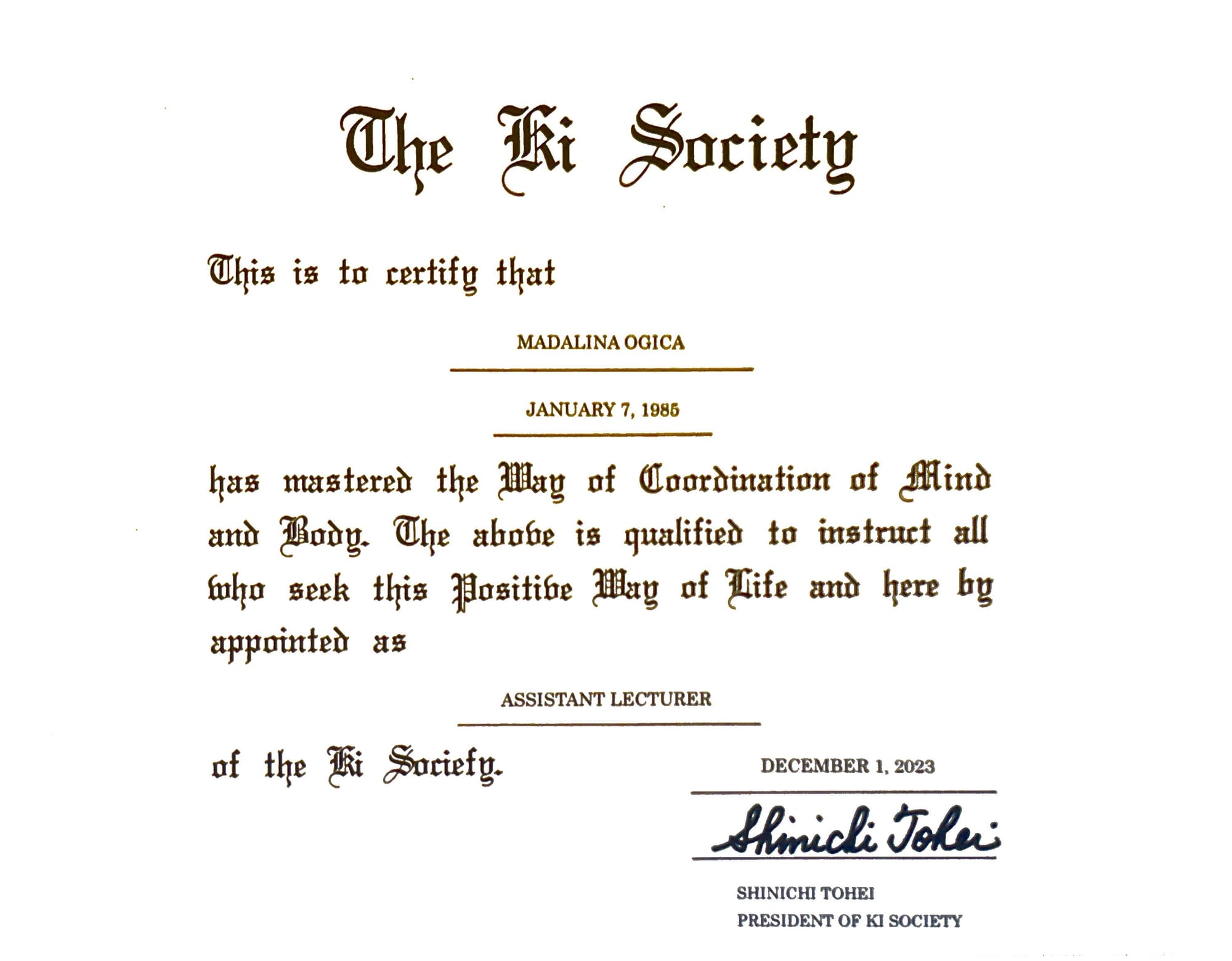I began training at 21 with the Ki School, where I trained under Cristian Ion Sensei (5th dan). I also attended international seminars with Mervyn Williams Sensei and Diana Williams Sensei. In 2014, I earned the rank of Nidan with the Ki School of Bucharest.